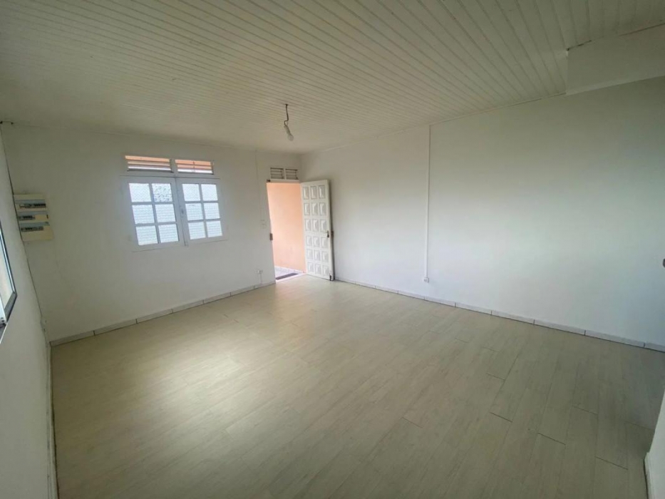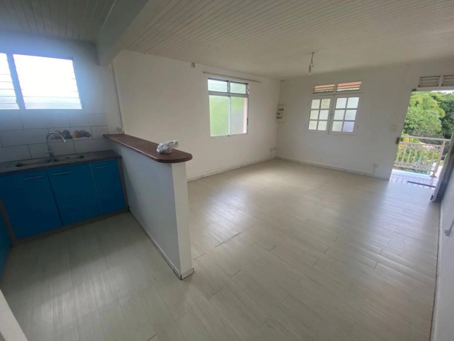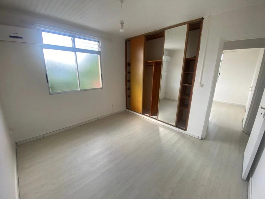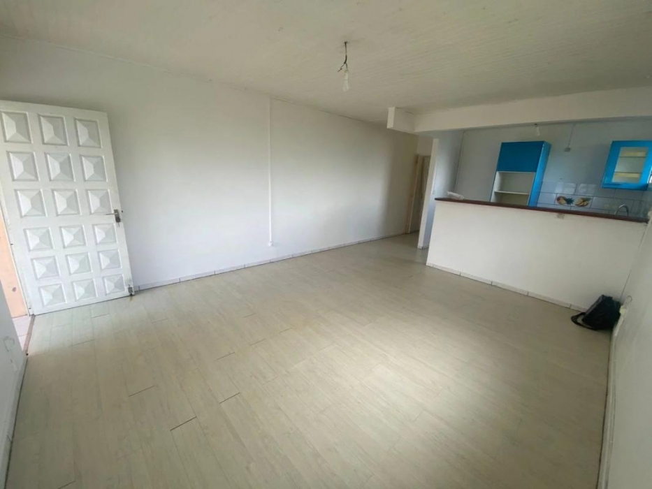 Ce logement situé à Ducos dans le quartier Rivière Pierre, au 1er étage d'un immeuble, dispose d'un grand séjour, d'une cuisine américaine aménagée, de 2 chambres climatisées, d'une salle d'eau avec WC ainsi qu'un WC indépendant.