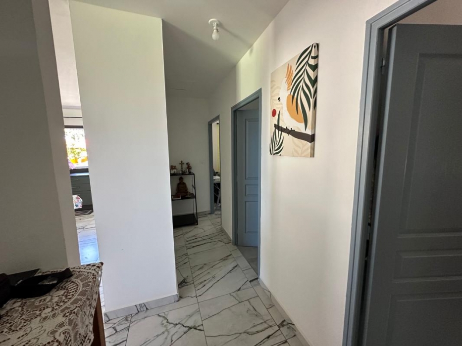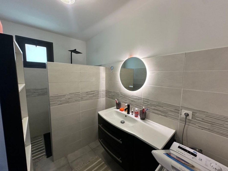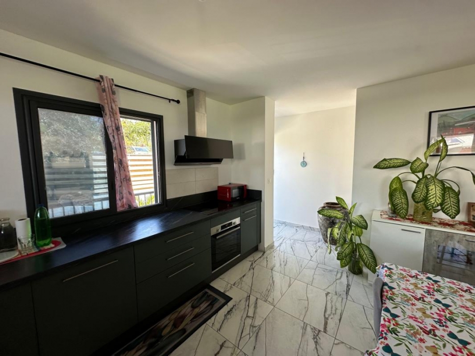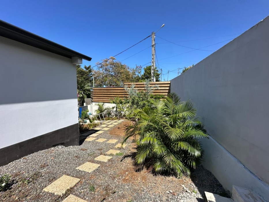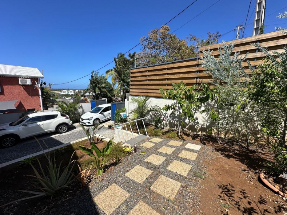 Maison individuelle de type F3 meublé avec jardin, espace intérieur non couverte pour voiture, d'une surface habitable de 74 mètres carrés + terrasse semi couverte de 30 m² soit 104 m² au total.