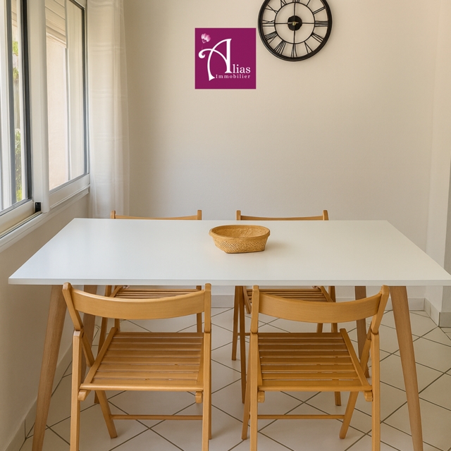 Entièrement meublé, cet appartement dispose d’un séjour lumineux et d’une cuisine aménagée et équipée.