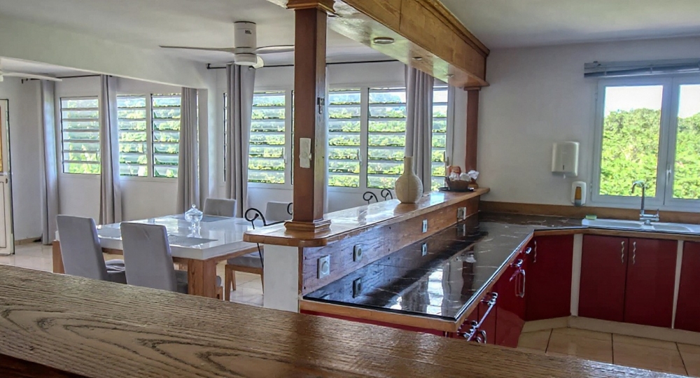 Situé à proximité immédiate du bourg du GOSIER, des plages de la DATCHA, de l'Anse Tabarin ainsi que de toutes commodités venez découvrir notre T5 meublé de 100 m2. Il se compose de 3 grandes chambres dont une suite parentale, idéale pour une famille. 2 salons dont une ouverte sur une grande cuisine équipée. 2 terrasses vous permettant de recevoir la famille, vos amis en toute décontraction. 2 salles d'eaux et 2 wc pour plus de confort.