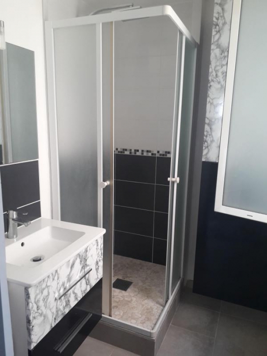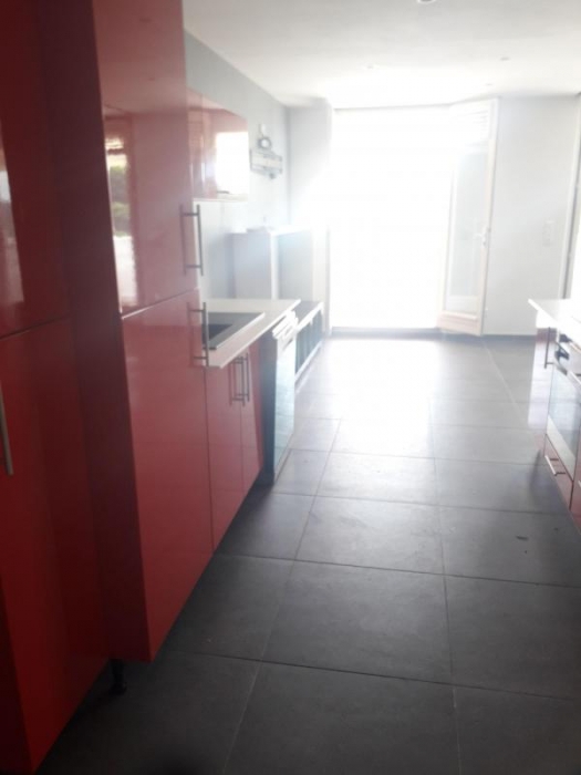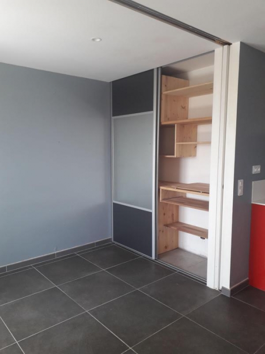 Une grande terrasse avec coin cuisine extérieur et un portillon donnant accès au parking si besoin. Disponible au 1er janvier 2026.