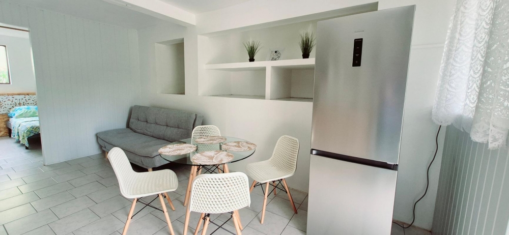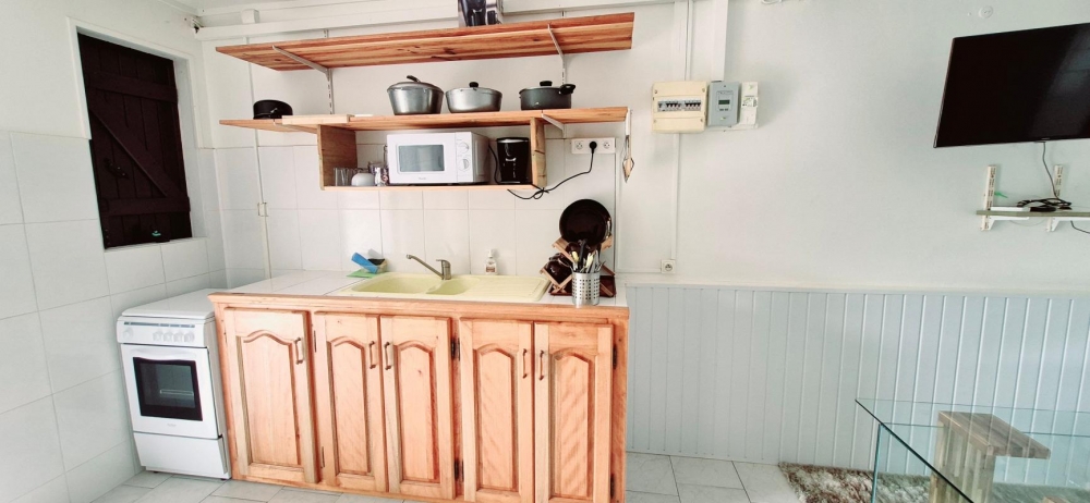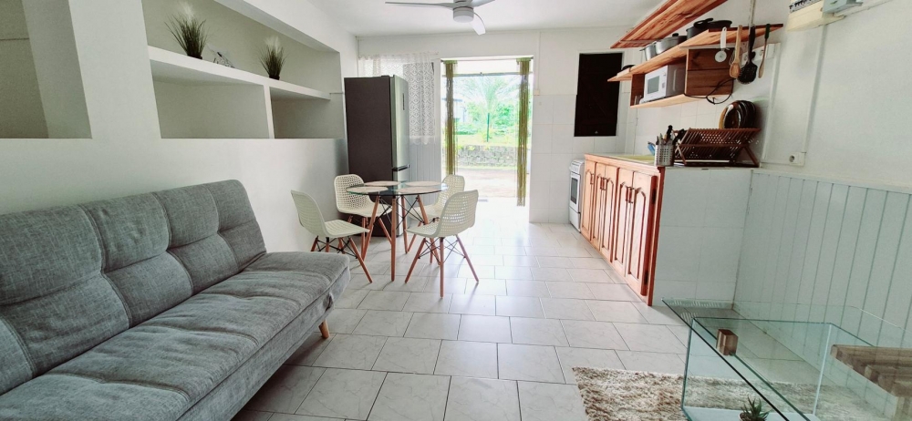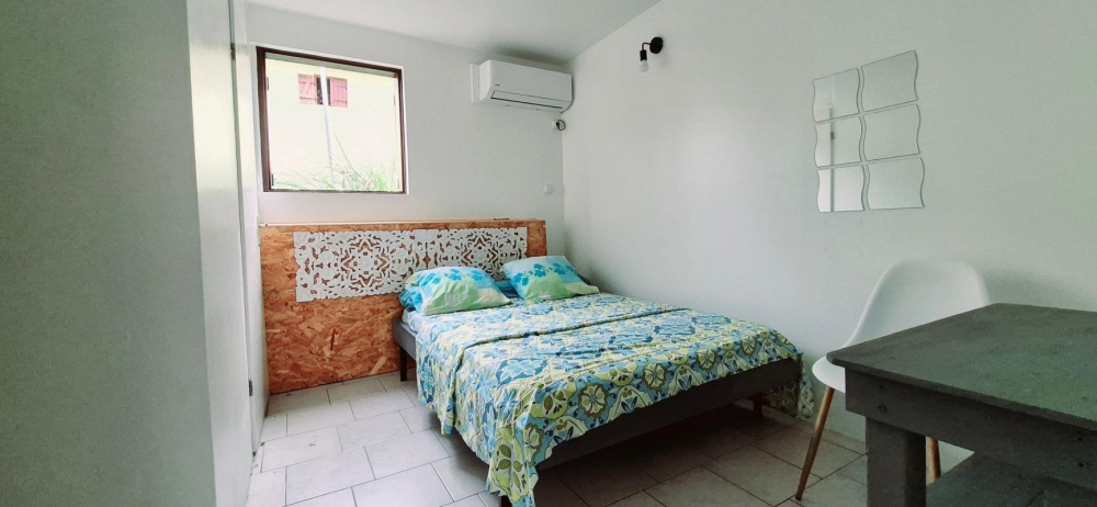 Il est composé d'une chambre climatisée, un séjour, une salle d'eau, une terrasse abrité et une zone de stationnement privative .