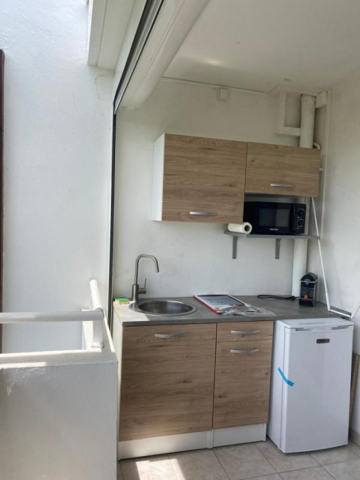 Il est composé d'une salle d'eau/wc, dégagement avec placard, pièce à vivre avec canapé, placard et lave linge et une terrasse de 6,75 m² avec coin kitchenette, le tout fermé par un volet roulant électrique avec une vue éloigné sur la mer.