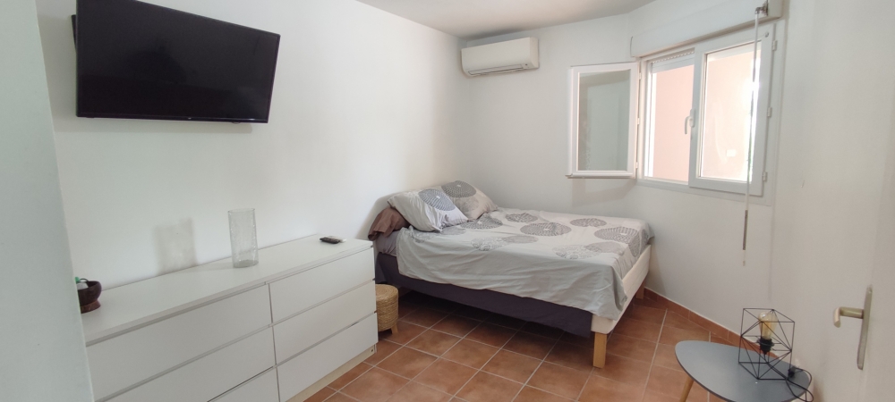 D'une surperficie totale d'environ 70m2, il comprend: un salon avec cuisine ouverte aménagée et très bien équipée, une chambre climatisée avec un grand placard de rangement intégré, une salle d'eau, un wc indépendant et une grand terrasse avec une vue agréable sur l'extérieur de la résidence très bien entretenue.