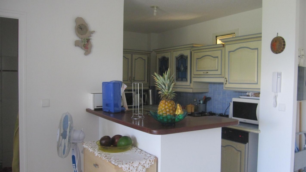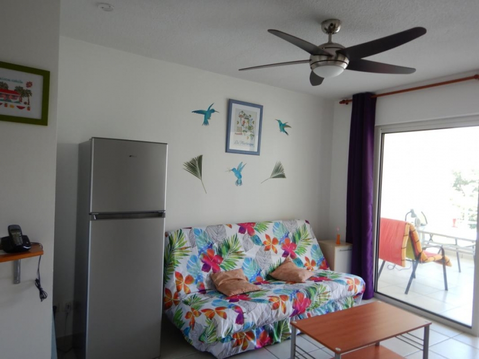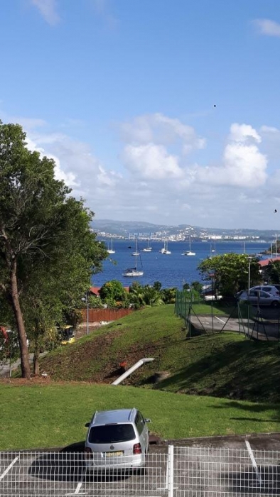 Charmant T2 meublé et équipé avec cave et emplacement de parking en extérieur, belle vue sur mer, à proximité de la plage, commerces et navettes maritimes pour Fort de France. Disponible le 15/09 visite possible