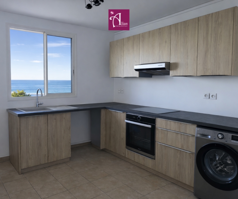 Dès l’entrée, le regard est attiré par la luminosité du séjour, ouvert sur une cuisine américaine neuve, pensée comme un espace de partage. Son bar prolonge naturellement la pièce de vie vers la terrasse extérieure, entièrement sécurisée par deux volets roulants motorisés, permettant de profiter des lieux à toute heure de la journée.
