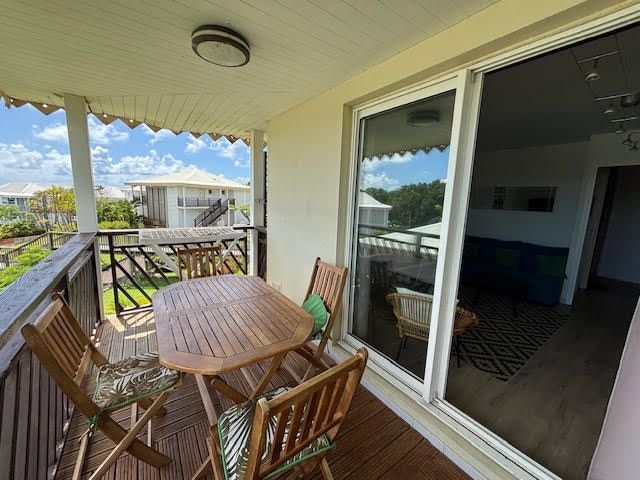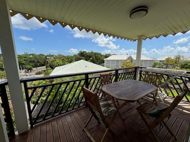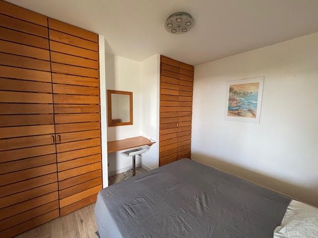 Il se compose d'une entrée avec placards, une pièce de vie climatisée avec son espace cuisine aménagée et équipée, une chambre climatisée avec placards, une petite chambre cabine climatisée avec lits superposés, un wc indépendant, une salle d'eau et un balcon couvert avec un aperçu mer.