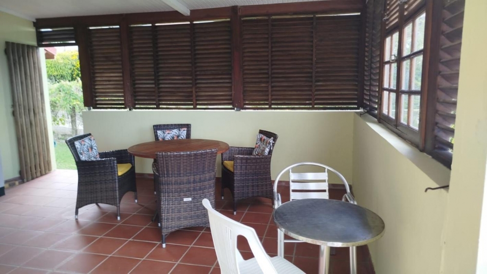 SAINTE LUCE QUARTIER GROS RAISIN. Haut de villa de 3 pièces meublé à louer avec belle vue mer. Il se compose de : Un séjour, une cuisine, 2 chambres climatisées, une salle de douche et un wc indépendant. Une grande terrasse.