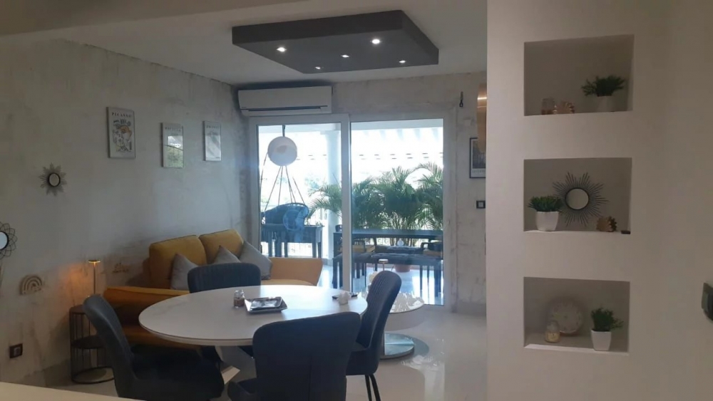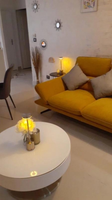 Dans une résidence calme et bien située, découvrez ce magnifique appartement de 2 chambres à l'esthétique soignée, au 1er étage, pensé pour offrir un cadre de vie à la fois fonctionnel et raffiné. Dès l'entrée, on est séduit par les lignes épurées et le mobilier design qui apportent une atmosphère chaleureuse et contemporaine.