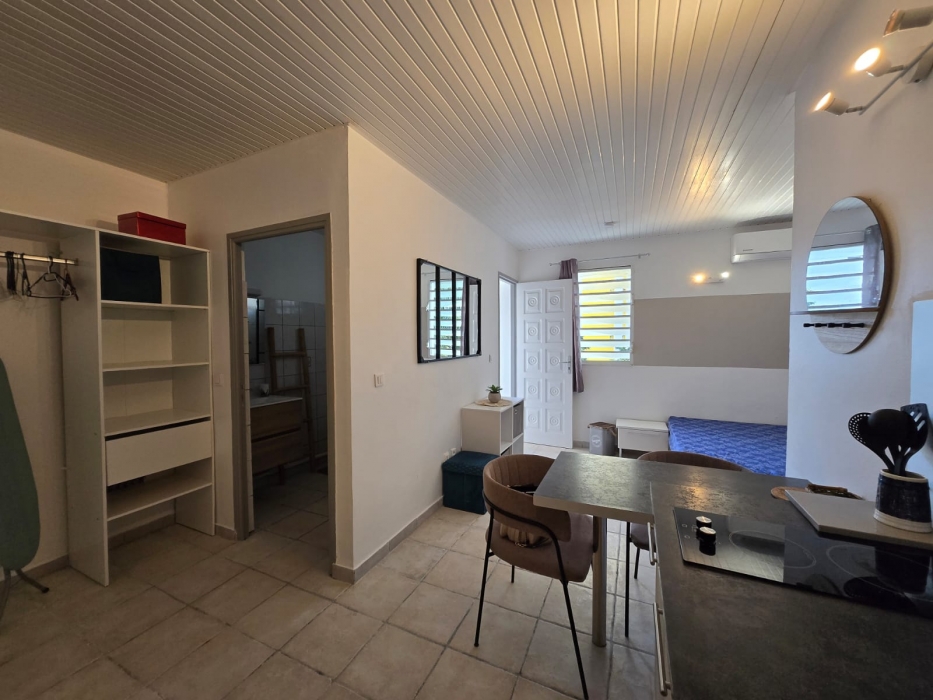 Il dispose d'une pièce principale avec un coin nuit et une cuisine très bien équipée, une jolie salle d'eau avec WC et une buanderie extérieure avec machine à laver. Propre et très bien équipé, cet appartement vous séduira.