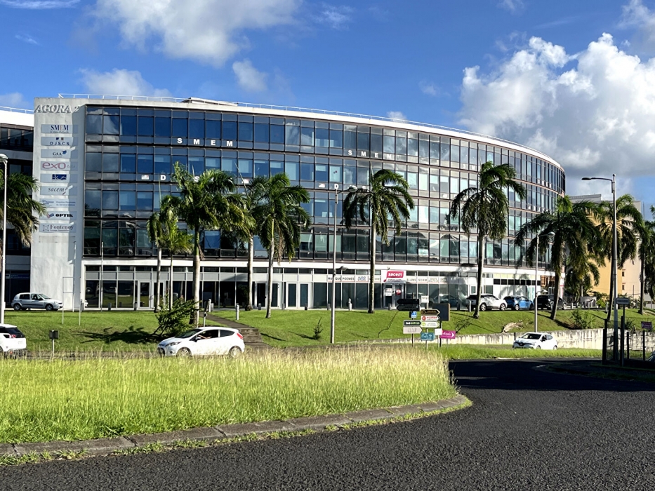 Au sein du Centre d'Affaires AGORA 2 , Etang Z'abricot, Fort de France, Plateaux bureaux de 615 m2 sur 2 niveaux (215 et 400 m2) PMR Agencé en plusieurs bureaux, salles de réunion, cafeteria. Climatisé, Parking S/sol et extérieur (38) Disponible 1er Trimestre 2026