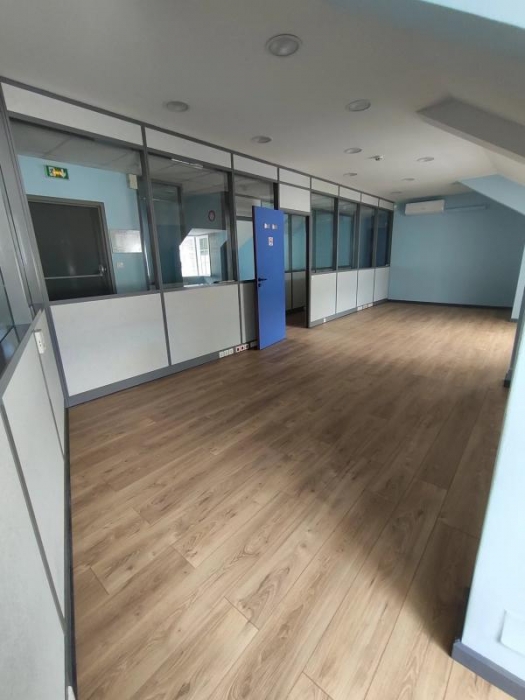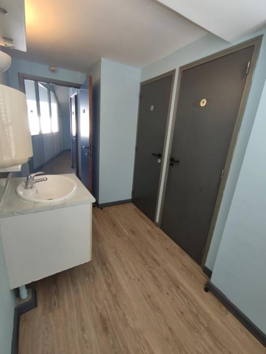 Trois bureaux, une salle d'archivage, une salle informatique, une cuisine et un coin WC avec lavabo.