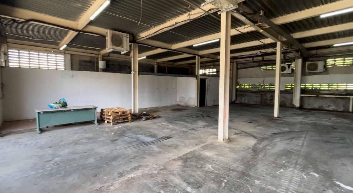 Dépôt d'environ 486 m² plus 225 m² en étage de bureau aménagé sur un terrain clôturé d'environ 500 m² restant .Un auvent est positionné sur le terrain