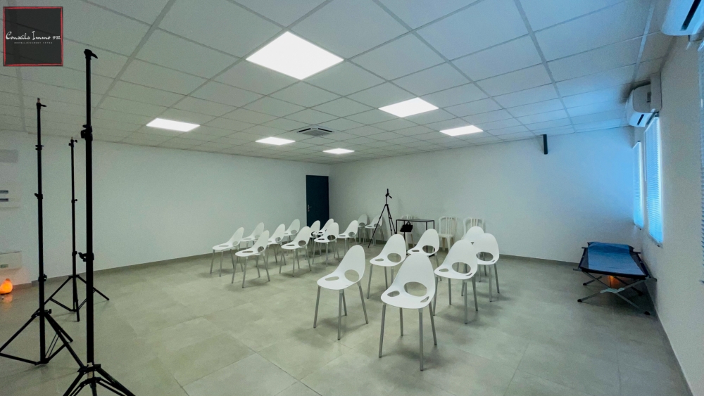 Surface utile de 55 m2 avec climatisation et prises réseaux. Parking disponible autour du bâtiment.