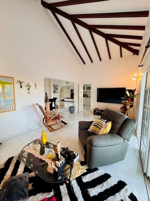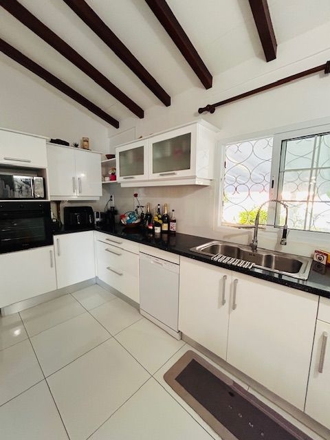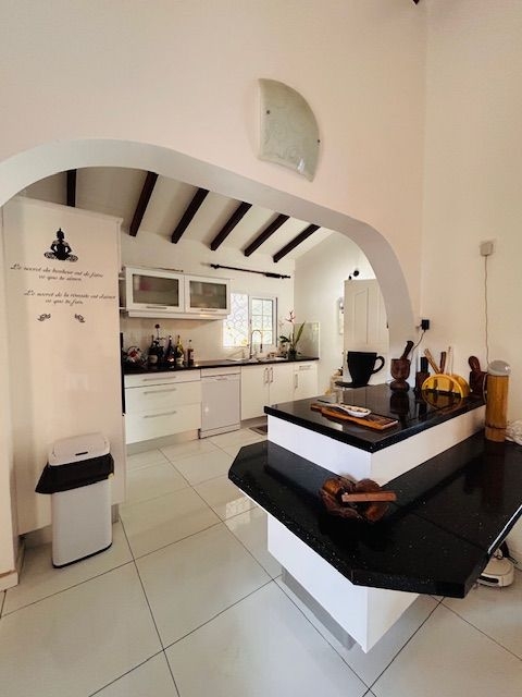 Le séjour lumineux s'ouvre sur une cuisine fonctionnelle entièrement équipée avec îlot central, idéale pour recevoir.