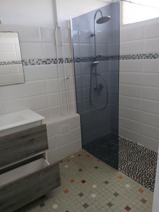 Au deuxième étage: trois chambres, une salle d'eau, un WC et un balcon avec vue mer.