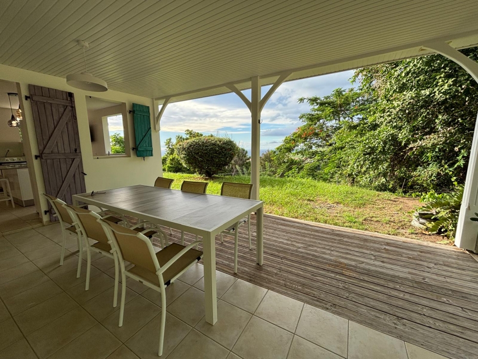 ACS IMMOBILIERS vous propose dans les hauteurs du Carbet, une charmante villa F3 entièrement rénovée et meublée avec goût idéalement située dans un quartier calme à 5 mn du Bourg et de la plage du Carbet. Elle comprenant un grand séjour,avec une cuisine ouverte aménagée et équipée, deux chambres climatisées dont une avec salle d'eau attenante, une salle d'eau et deux grandes terrasses d'où ou peut profiter de la vue typique du Nord Caraïbe entre mer et Montagne Pelée. Elle bénéficie d'un grand jardin arboré et de six places de parking. .