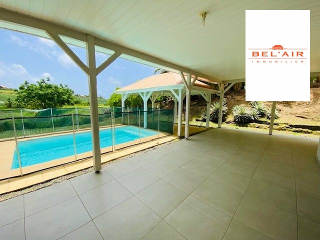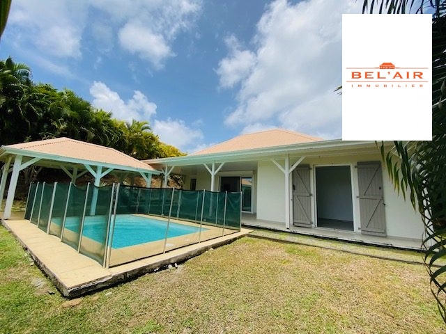LE VAUCLIN : Située dans lotissement sécurisé, charmante villa F4 de plain pied comprenant un grand salon, cuisine aménagée ouverte, buanderie. Trois chambres avec espace de rangement et climatisées, deux salles d'eau. Belle terrasse à vivre avec piscine et carbet. Deux places de parking privatives.