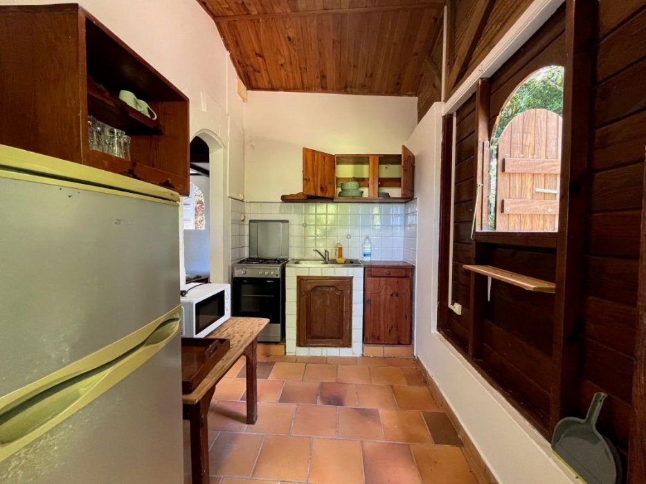 LE VAUCLIN : Secteur Macabou, non loin du Marin et de Saint-Anne, jolie petite maison type bungalow de 42m² habitable + grande terrasse d'environ 24m² à louer toutes charges comprises (eau + électricité).