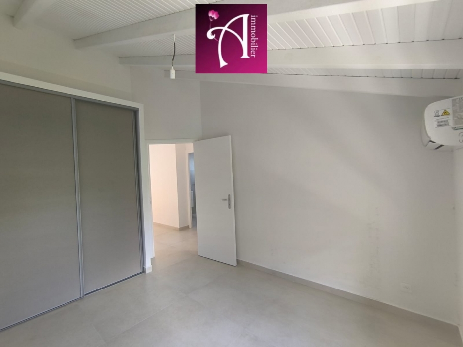 La villa dispose de trois chambres climatisées, réparties entre le rez-de-chaussé et l'étage, dont les plus spacieuses sont équipées de placards intégrés.
