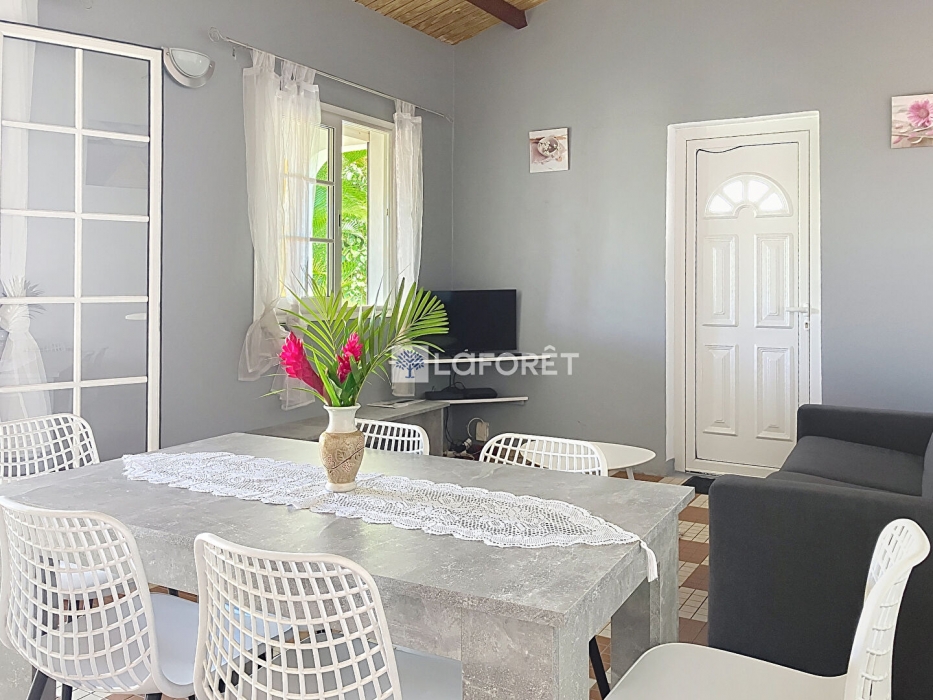 Laforêt Baie-Mahault vous propose la location meublée de cette charmante maison T3. située dans le centre de PETIT-BOURG, vous pourrez profiter de ce secteur calme en ayant tout à proximité. D'une superficie de 52m², elle est composée d'un séjour, d'une cuisine équipée, d'une salle d'eau et de deux chambres climatisées. Vous pourrez aussi profiter de sa grande terrasse et de son beau jardin arboré. La provision sur charges de 165 euros comprend : pack internet TV , un passage mensuel du jardinier et un élagage tous les quatre mois des arbres. Disponible immédiatement. "Les informations sur les risques auxquels ce bien est exposé sont disponibles sur le site Géorisques: www.georisques.gouv.fr » On résume: Charmante maison T3 de 52 m² en location meublée dans un secteur calme de PETIT-BOURG et à proximité de tout. Pour toute visite, merci d'adresser votre dossier de candidature à l'adresse suivante xxxxxxx@xxxxx