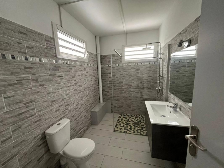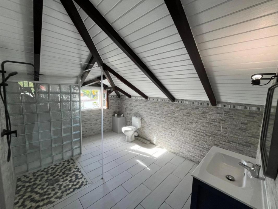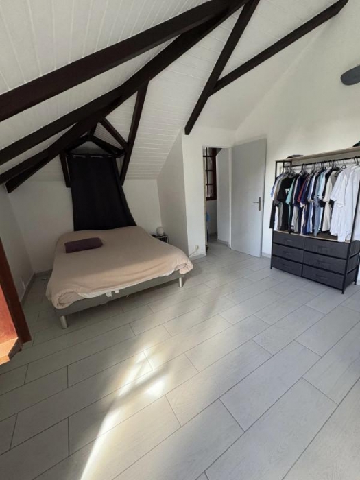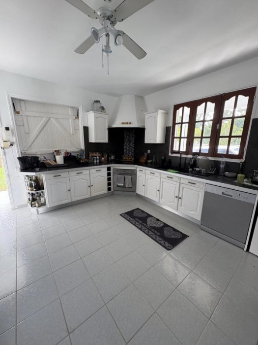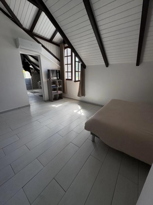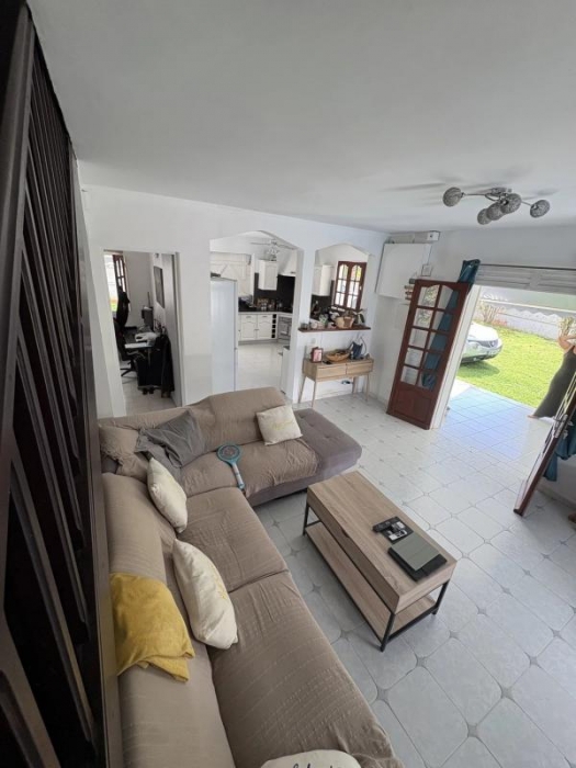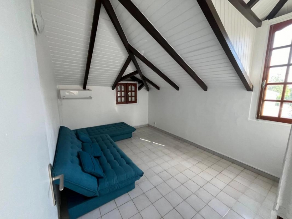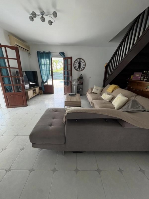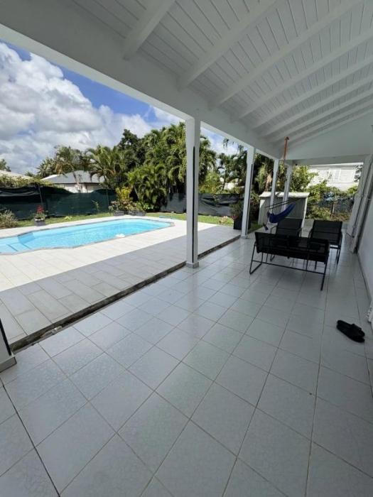 Jolie villa T6 avec piscine à Arnouville,sans odeur de sargasse, à proximité de la Z.I. de Jarry et des commerces, au calme, comprenant : 1 cuisine aménagée et semi équipée (Plaque, hotte, four, frigo), 1 séjour climatisé, 1 bureau ou chambre, 1 dégagement, 1 salle d'eau avec wc , 1 chambre climatisée.
