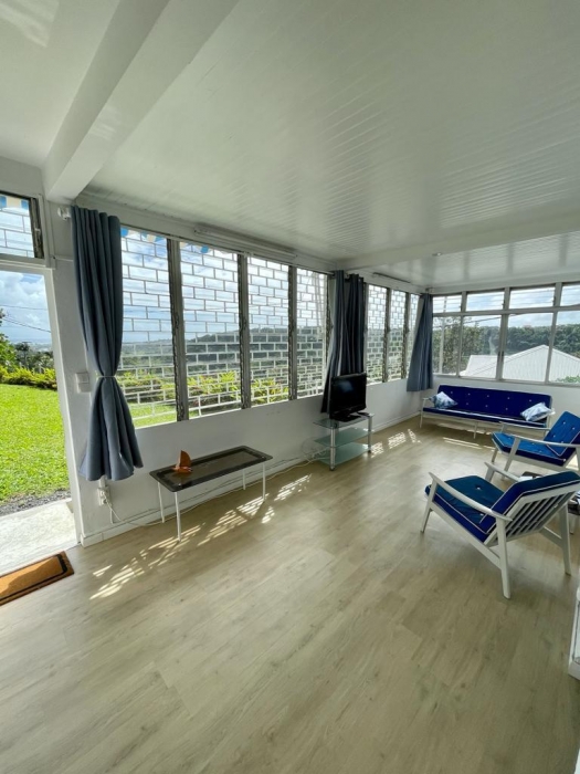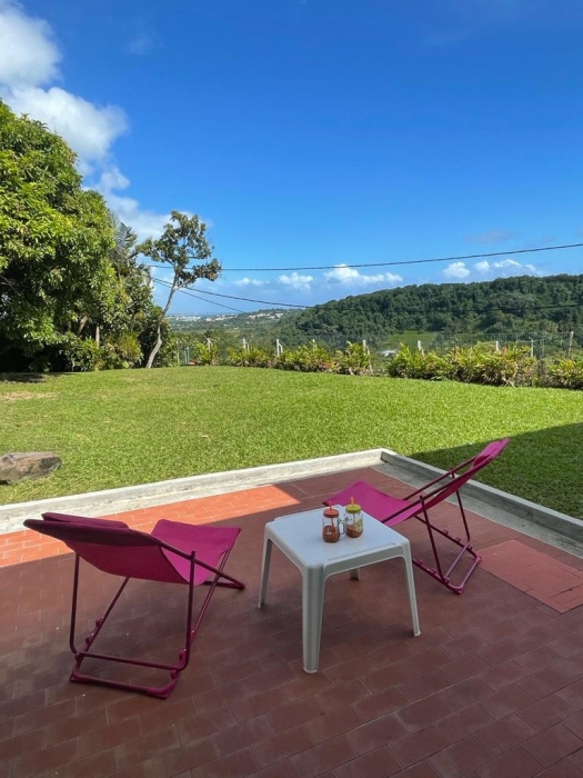 Située à Petit-bourg,entourée d'un vaste jardin arboré. Elle offre un cadre de vie paisible et verdoyant, avec une vue panoramique dégagée sur la région de Grande terre.