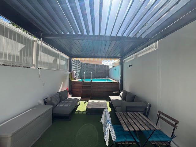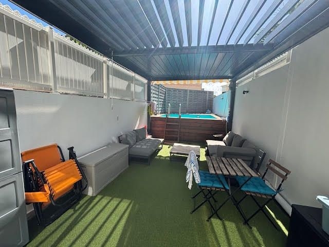 La maison vous propose également une terrasse d'environ 20m² disposant d'une pergola bioclimatique et d'une piscine hors-sol en bois de 3mX3m au chlore. Elle est également équipée de la fibre optique et vous disposez d'une place de parking devant.
