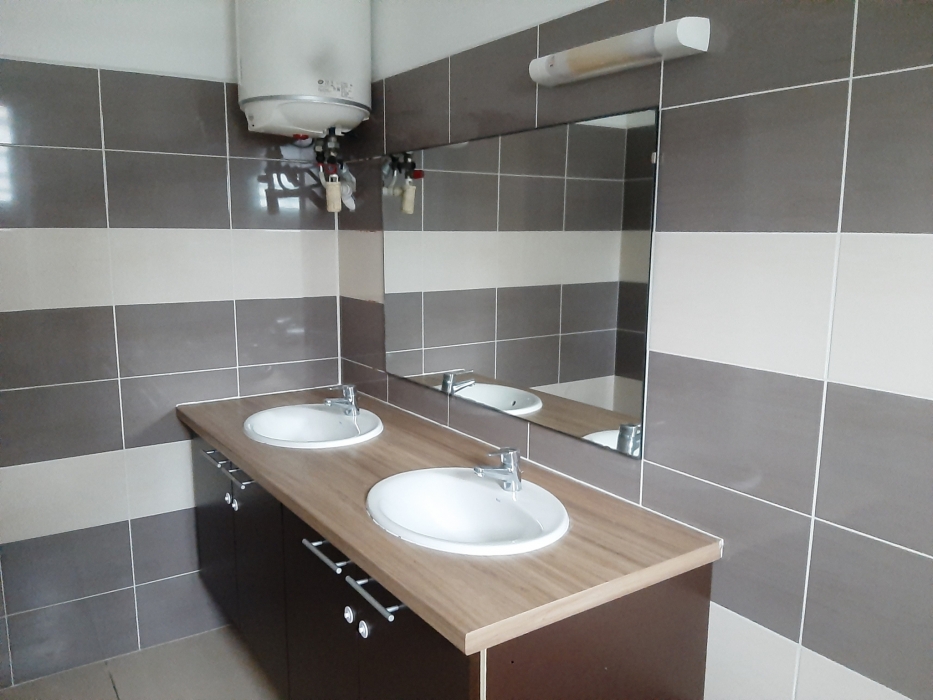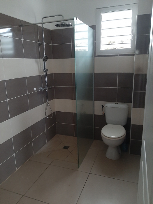 Bonne prestation pour ces deux villas mitoyennes composées chacune d'un espace séjour/cuisine de 33,41m2 : séjour avec grandes baie vitrées donnant sur une varangue de 62,65 m2 et cuisine semi équipée (meubles de rangement, emplacement four et lave -vaisselle. Electroménager : plaques de cuisson).