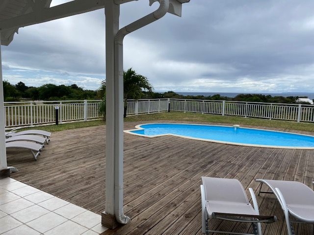 Exclusivité Orpi, villa meublée avec sa piscine privative située sur la route de la pointe des châteaux. Elle est composée de deux chambres climatisées avec une salle d'eau /wc et d'une chambre parentale climatisée avec sa salle d'eau/wc, une grande cuisine aménagée et équipée ouverte sur le salon avec son cellier attenant et un wc indépendant. Vous y retrouverez également une grande terrasse couverte d'environ 42m² donnant sur la piscine avec une très belle vue mer . La villa est équipée d'une citerne tampon donc pas de coupures d'eau, d'une alarme et de l'équipement nécessaire en cas d'incendie. Le prix inclus l'entretien du jardin et de la piscine. L'eau, l'électricité et internet sont à la charge du locataire. Disponible à partir de fin mars 2026.