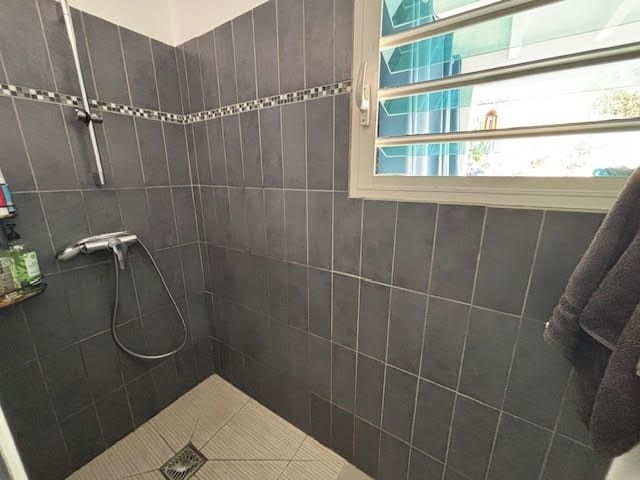 Elle se compose d'une spacieuse pièce de vie salon/séjour avec sa cuisine aménagée et équipée, un wc indépendant, une chambre parentale climatisée avec sa salle d'eau proposant un accès direct à une terrasse et une cour privative.
