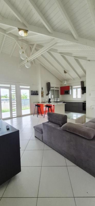 Composée d'une cuisine avec cellier attenant complètement aménagée et équipée, ouverte sur le salon, trois chambres climatisées dont une suite parentale avec salle d'eau et dressing, une seconde salle d'eau et un WC indépendant, une terrasse en L sans aucun vis à vis, citerne d'eau et portail électrique.