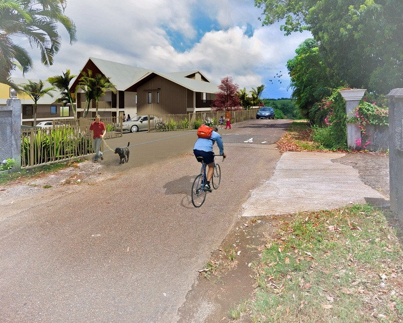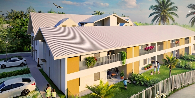 Les logements bénéficient de varangues spacieuses habillées de claustras, favorisant l'ombrage et la ventilation traversante est-ouest grâce aux alizés.