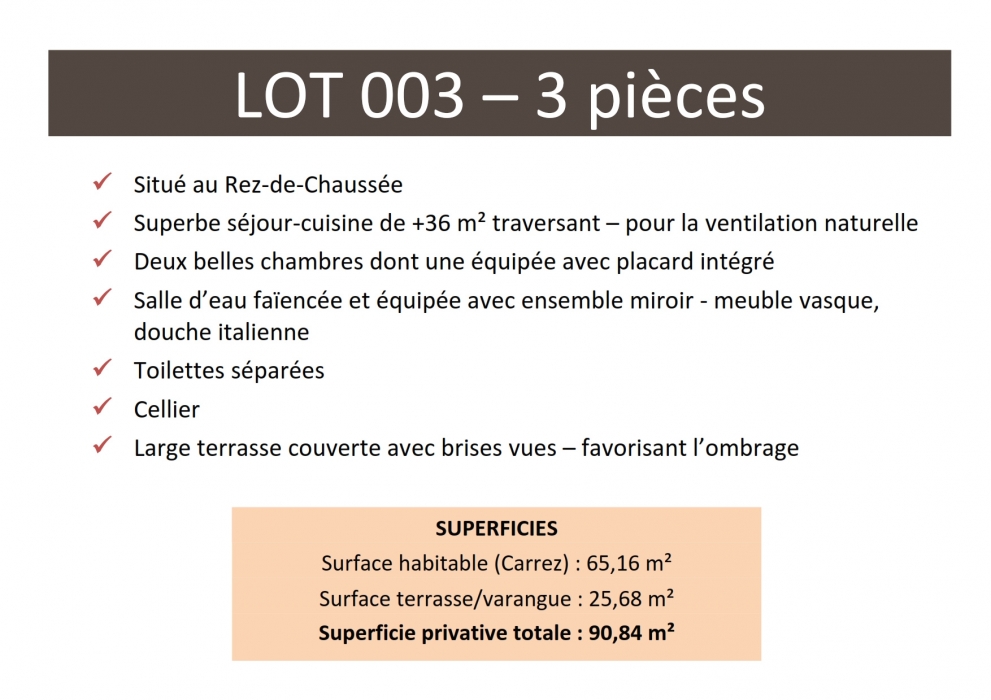 Prix de vente : 297 000 € TTC, parking privé numéroté inclus.