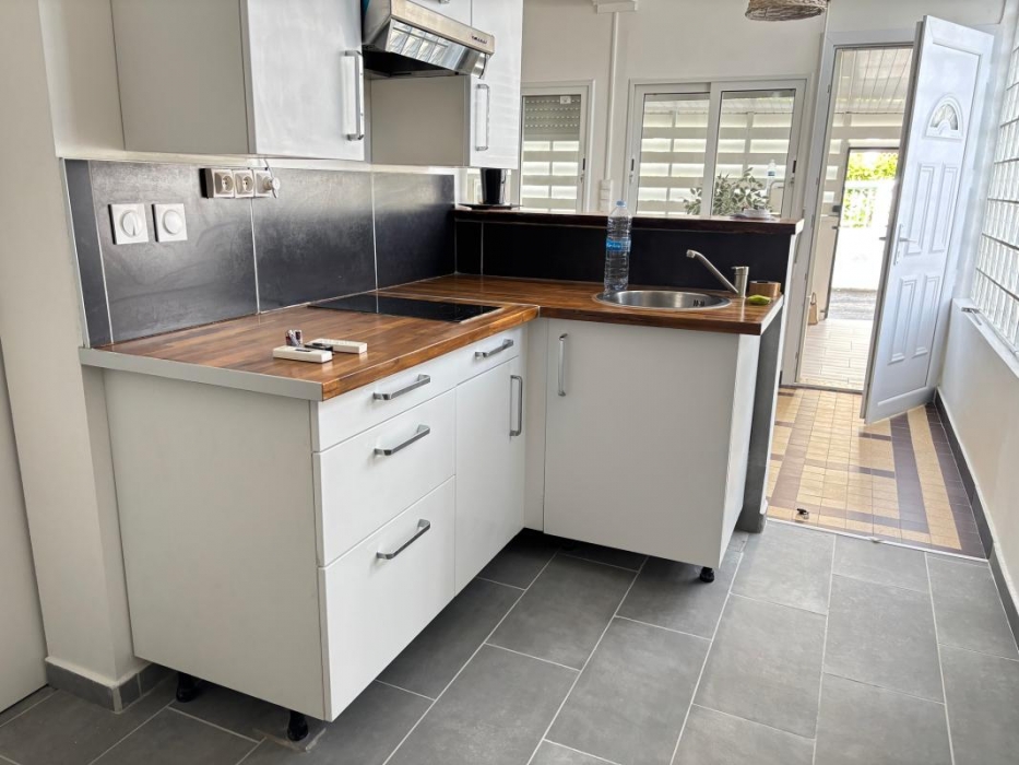 Il est composé d'une véranda transformée en séjour, avec volets roulants, une cuisine aménagée et équipée, une salle d'eau, un wc et une chambre.