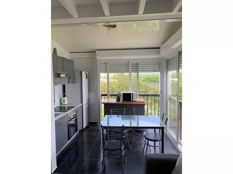 Comprenant : 1 salle d'eau avec wc, 1 dégagement avec placard, 1 coin buanderie, 1 séjour climatisé donnant sur la terrasse et la cuisine aménagée et équipée.