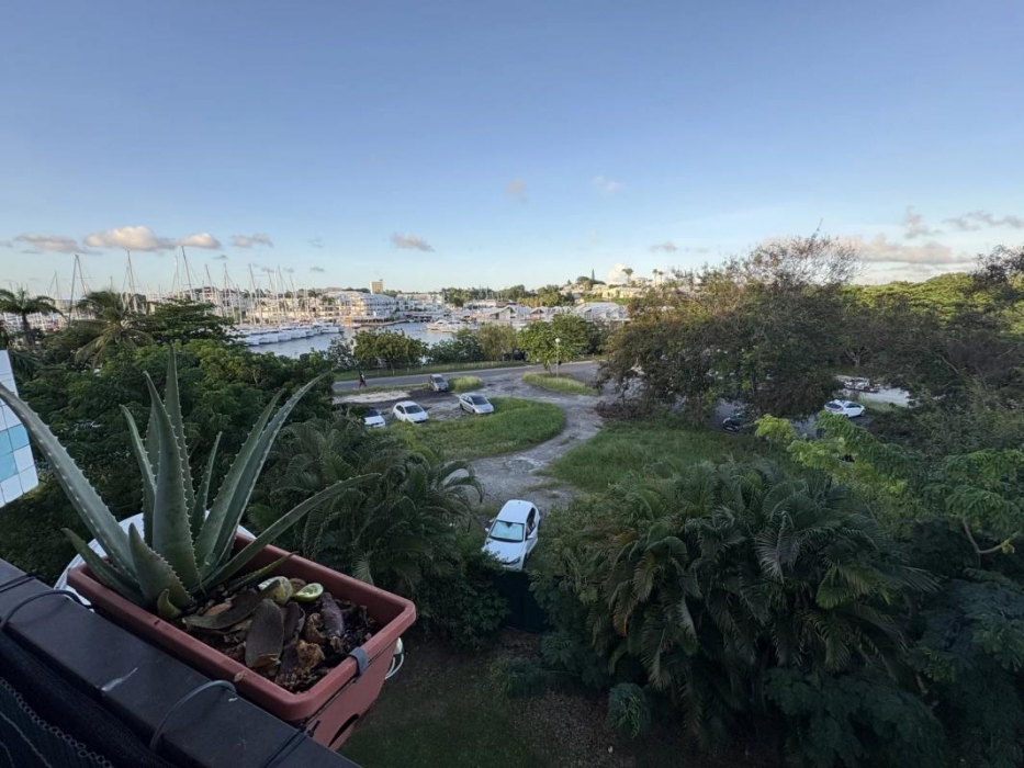 Beau T3 en duplex, au 3ème et dernier étage, avec vue Marina, à Bas-du-Fort, dans une résidence sécurisée avec grande piscine et accès à 1 plage, proche des commerces.