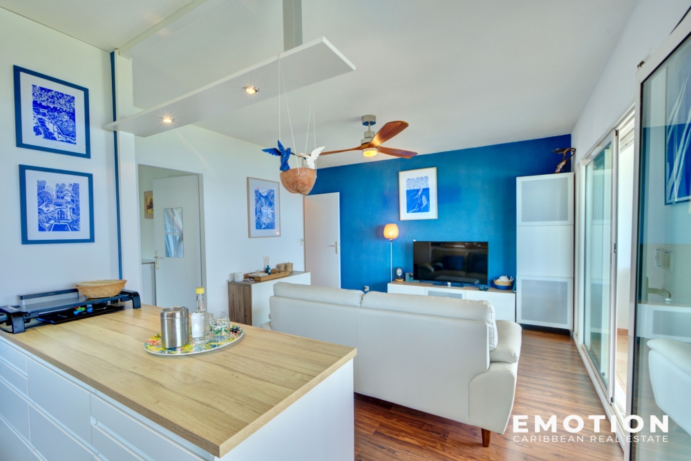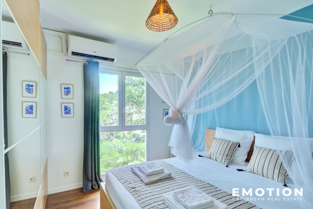 Le Cabinet Emotion Guadeloupe vous propose à la vente, un appartement 3 chambres duplex de 74 m2 dans la ville de Gourbeyre, à la marina de Rivière Sens.