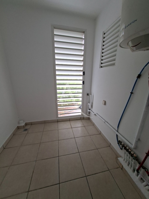 Le Robert, ravissant appartement de type F4 situé au troisième étage et comprenant : Entrée, un vaste séjour, cuisine à aménager, un cellier, un dégagement, trois chambres, deux salles de bains, deux WC, varangue de 20.75 m² offrant une vue dégagée et un balcon. Un BOX DE GARAGE situé au sous-sol Les plus : proche de toutes commodités à 5 min du centre commercial Océanis et du bourg du Robert, lotissement calme et agréable très bien entretenu, appartement situé au dernier étage. Honoraires à la charge du vendeur Copropriété de 22 lots - dont 22 lots habitation. (Pas de procédure en cours). Charges annuelles : 2364 euros.