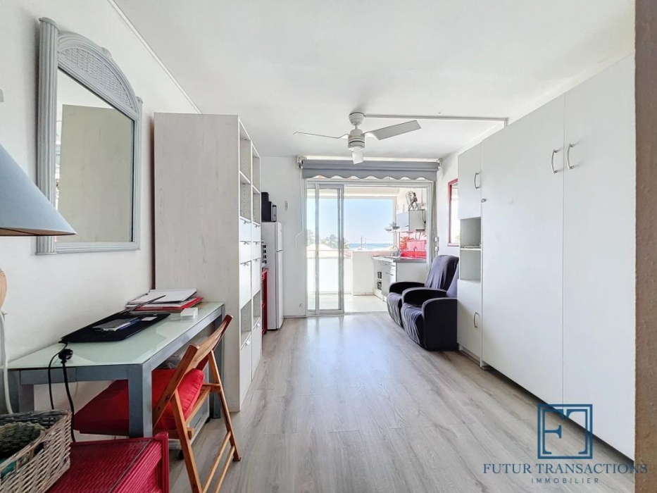 Appartement T1/studio de 23,75 m2 de surface totale (19,43 m2 en Carrez)), situé au 2ème étage avec ascenseur, comprenant une pièce climatisée lumineuse avec un lit escamotable et des rangements, une kitchenette aménagée sur une terrasse bien ventilée avec vue mer, exposition sud, une salle de bains aménagée avec WC et lave-linge.