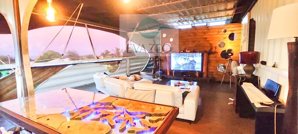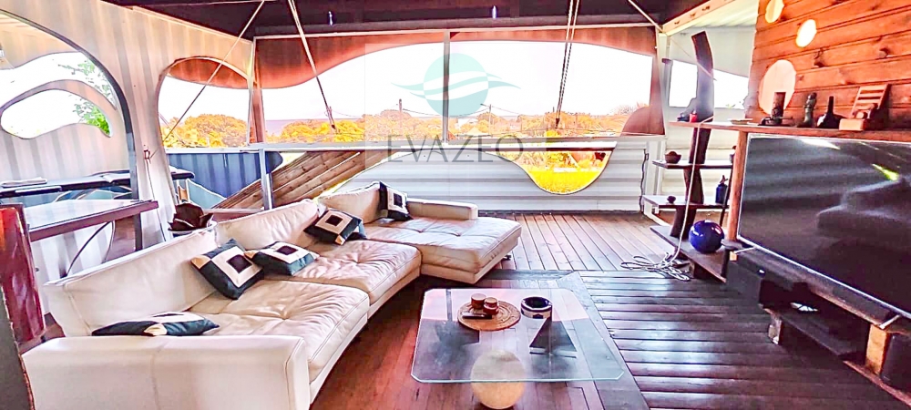 Le terrain arboré et clos de 1 500m2 avec deux portails comprend une grande bâtisse principale de 248m2 construite en containers et bois (format colonial 20 x 10m sur 2 niveaux), un bungalow en bois indépendant de 72m2 avec garage fermé de 24m2 et appartement T2 de 48m2. Surface totale plancher porteur de 320m2 dont 158m2 habitables.