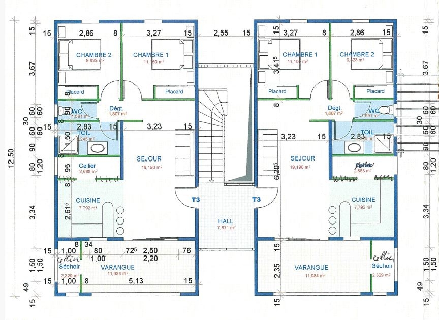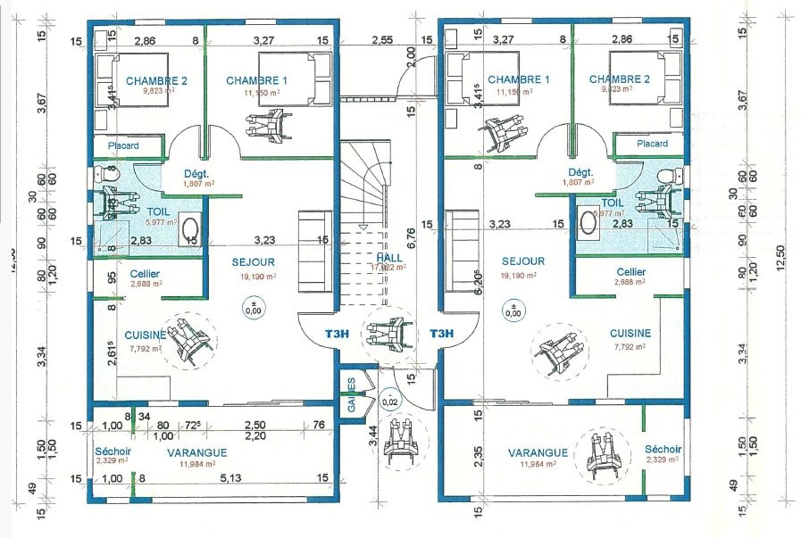 Immeuble de 4 appartements, deux T3 en RDC et deux T4 à l’étage pour une surface habitable total de 254 m2 et un local de 109,56m2 de surface au sol, pouvant être aménagé en local commercial ou autre.