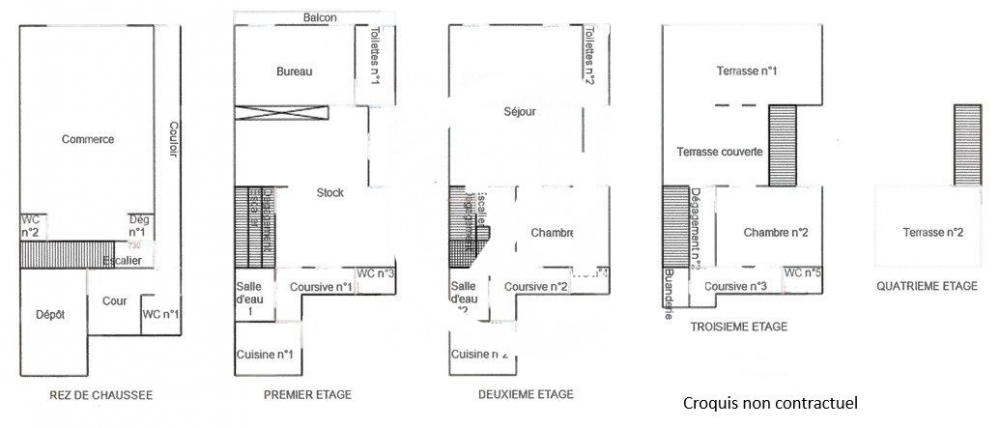 Au rez-de-chaussée, vous trouverez un local commercial, parfait pour accueillir une boutique ou un bureau, ainsi qu'un dépôt et un WC.