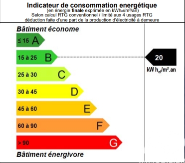Information d'affichage énergétique sur ce bien : classe ENERGIE B indice 20 et classe CLIMAT NS indice .