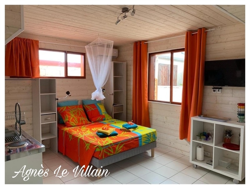 Le T2 est composé d'un séjour - cuisine, une chambre, et une salle d'eau, une terrasse avec une vue dégagée sur le morne.