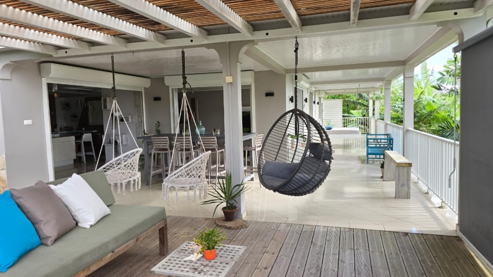 ACS IMMOBILIERS vous invite à découvrir cette magnifique villa sur deux niveaux, entièrement rénovée avec goût et raffinement, située dans un quartier résidentiel très recherché du Marin. Offrant un cadre de vie paisible, sans aucun vis-à-vis, elle bénéficie d’une vue dégagée sur la mer et la campagne environnante. Au rez-de-chaussée, un T3 indépendant vous accueille avec deux chambres dont une suite parentale, une cuisine ouverte sur une belle terrasse prolongée par un deck et une piscine, idéale pour profiter des journées ensoleillées. Cet espace est régulièrement loué en saisonnier, offrant un excellent rendement locatif. À l’étage, un superbe T5 propose quatre chambres dont une suite parentale, un gigantesque séjour lumineux avec billard, ainsi qu’une cuisine moderne ouverte sur le séjour et la grande terrasse. L’ensemble est en parfait état général, ventilé et baigné de lumière naturelle. La propriété dispose de stationnements intérieurs et extérieurs, dans un environnement calme et verdoyant. Un véritable havre de paix, parfait pour une grande famille ou un projet d’investissement locatif.