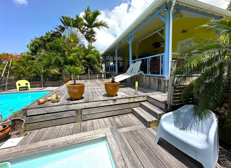 Le VAUCLIN: Très Belle villa de style créole T6. Avec ces 4 vraies chambres dont une avec mezzanine, cette propriété est conçue avec des essences de bois du brésil en majorité. Pour un confort optimal les chambres sont climatisées. Un chauffe-eau solaire vous assurera de belles économies et la villa est sécurisée avec des volet en bois. Vous profiterez d'une importante hauteur sous plafond de 4 mètres ce qui garantit un confort climatique et visuel intéressant. La grande plage de la piscine est en deck avec un beau rendu visuel. La fosse septique est de2022 (rare) et la construction de 2002 est récente. Du séjour a la piscine vous serez comblés par une magnifique vue mer. Le secteur est bien ventilé par les alizés, calme et résidentiel. Stationnement facile + 1 parking couvert.... Nous serions ravis de vous faire découvrir votre futur chez vous et les qualités de cette belle villa, à bientôt pour une visite privée.