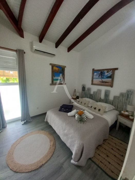 Venez vite découvrir cette jolie villa jumelée de type T4 en duplex , meublée et décorée avec goût avec piscine dédiée à la location saisonnière à l'Anse à l'Ane aux Trois-Ilets comprenant: -au rez-de-chaussée : une salle de bains, un dégagement, un séjour, une cuisine aménagée et équipée, une lingerie , une loggia, un patio ; - à l'étage : un dégagement , trois chambres dont deux avec placard et balcon, une salle de bains et un WC indépendant ; Et la jouissance exclusive d'un jardin privatif de 84 m² + 2 places de parking. Proche des plages, elle vous offre une cadre de vie exceptionnel. Rapport locatif : EXCELLENT! Maryline FOYE (EI) Agent Commercial - Numéro RSAC : - .