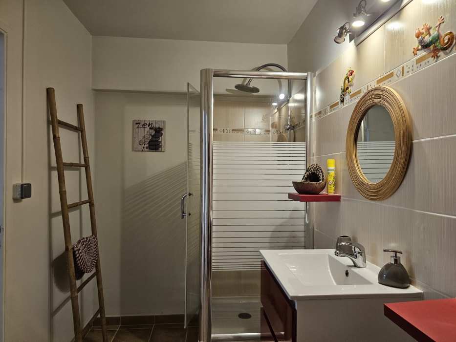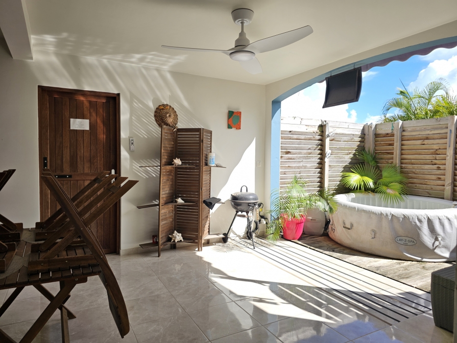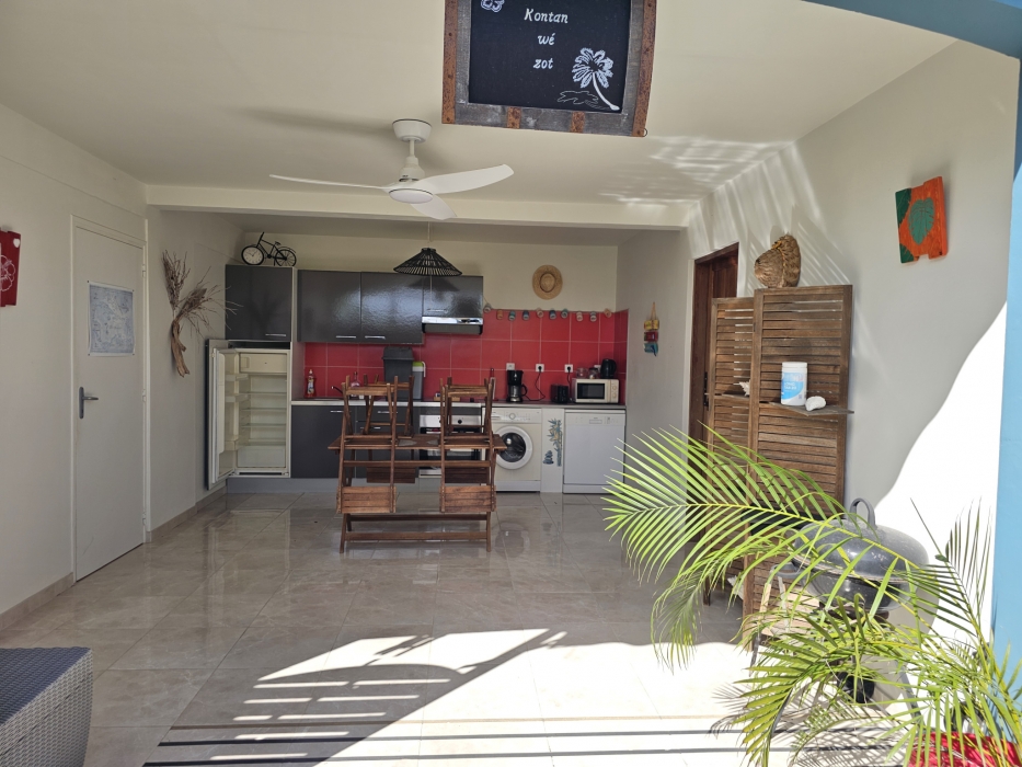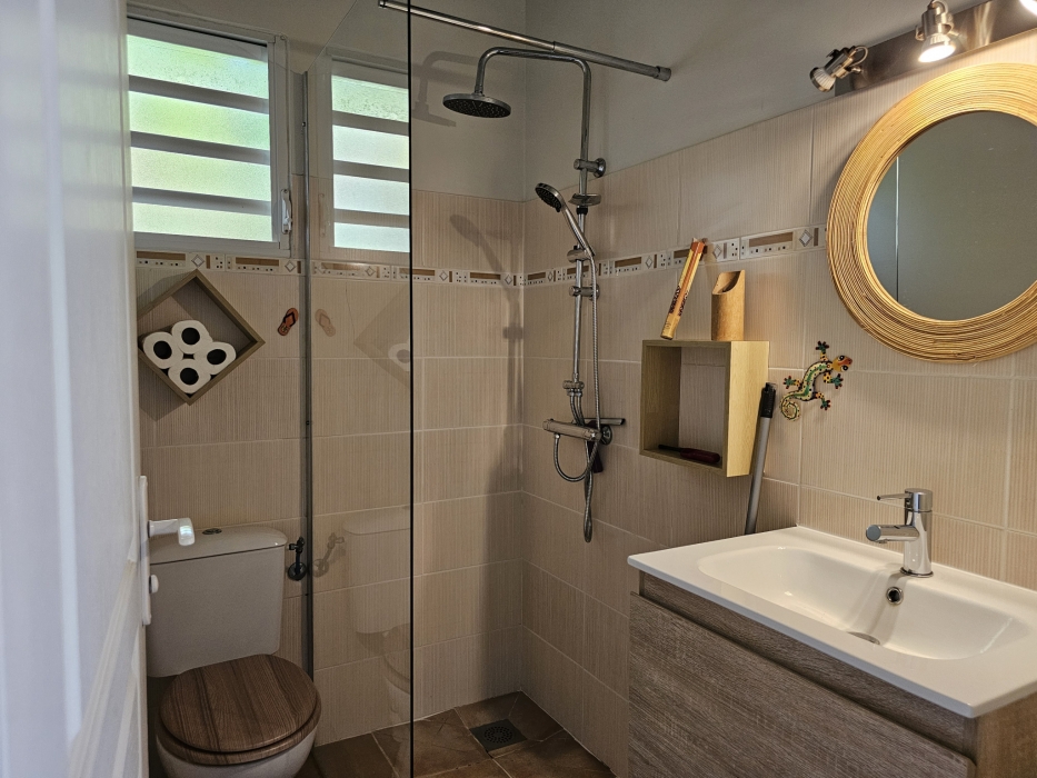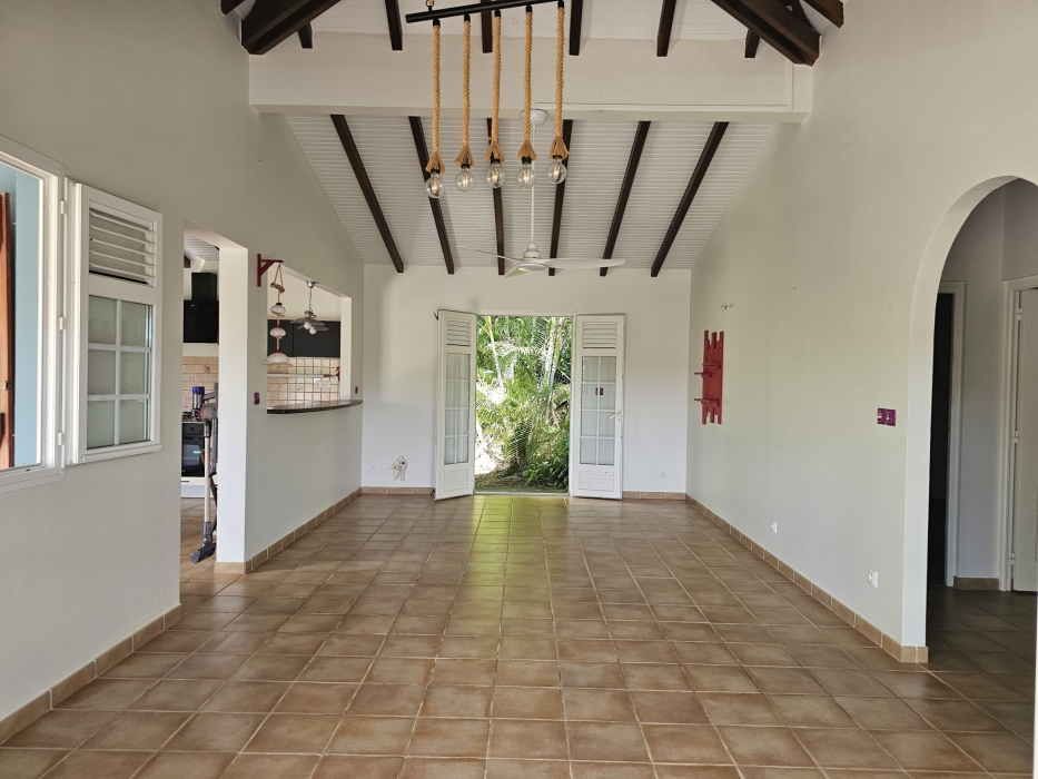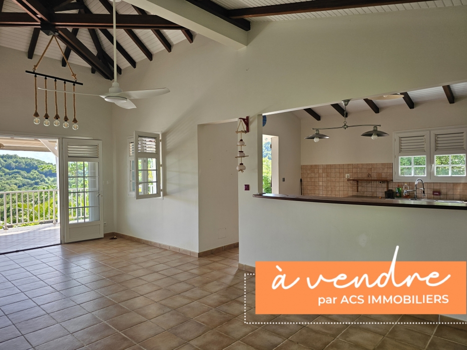 ACS Immobiliers vous propose, dans un quartier calme et prisé, cette maison d'habitation T3 proposant en RdC un T2 indépendant pouvant générer un revenu locatif attrayant. Totalisant 186m2 au sol avec sa superbe terrasse et un atelier de 30m2. Dotée d'un portail électrique et de places de stationnement dans l'enceinte de la propriété, cette villa, aux volumes généreux, propose, une cuisine ouverte sur le séjour sublimé par sa charpente apparente donnant un très beau volume à cet espace de vie intérieur. Dans la partie nuit, une chambre climatisée avec sa salle d'eau attenante avec douche à l'italienne, une deuxième chambre avec brasseur d'air et une salle d'eau avec wc. La cuisine et le séjour donnent sur une belle terrasse couverte de plus de 35m2 offrant une vue campagne mais également une petite vue mer et baie de Fort-de-France. En RdC, un logement T2 entièrement meublé et équipé, prêt à l'emploi, avec son accès indépendant, propose une terrasse couverte avec son coin cuisine, prolongé par un espace détente avec jaccuzi, une chambre climatisée et sa salle d'eau attenante avec wc. Pour compléter ce bien, un atelier, un espace buanderie, un dépôt, une cuve de récupération d'eau de 1.100l et un ballon solaire. En extérieur, au coeur d'un jardin arboré, sans vis-à-vis, vous apprécierez le bac à punch au traitement au sel, la terrasse en deck pouvant accueillir vos transats dédiant ainsi cet espace à la détente !