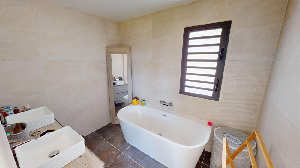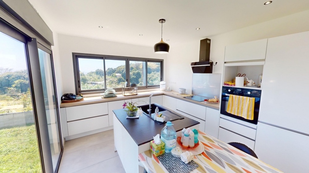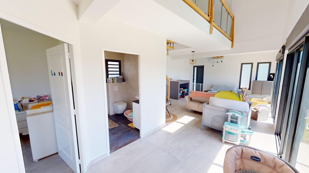 Premium Immobilier vous propose à la vente à Saint-Benoît, une maison moderne et lumineuse d'une surface de 110 m2 habitable. Vous allez apprécier ses nombreuses ouvertures vitrées, offrant une belle luminosité et une aération agréable de chacune des pièces. Edifiée sur un terrain de 400 m2, elle se compose de la façon suivante : Au rez-de-chaussée : - un vaste séjour de 32 m2 - une cuisine fonctionnelle dotée de nombreux rangements et d'un ilot central - une chambre - une salle d'eau - un WC A l'étage : - deux chambres dont une suite parentale avec dressing - une salle de bain - un WC - un espace bureau - un balcon offrant une vue dégagée Cette propriété profite d'un environnement calme et résidentiel situé à l'entrée de Saint-Benoît, à deux pas des axes routiers et du collège Alexandre Monet. Une construction récente, des prestations de qualité, un environnement de choix, pour le bien-être de votre famille. Pour consulter les informations sur les risques naturels et technologiques auxquels ce bien pourrait être exposé veuillez consulter le site Géorisques http://www.georisques.gouv.fr Premium Immobilier - achat - vente - à vendre - maison F4 - villa F4 - Saint-Benoît - Réunion